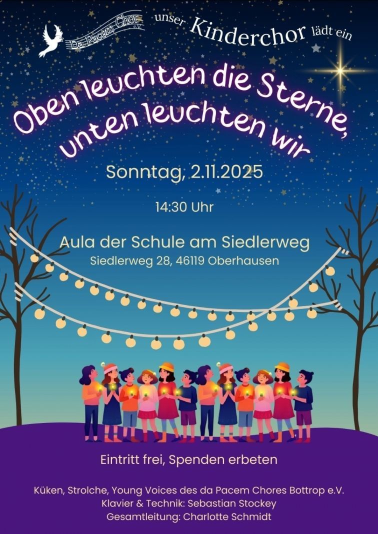 Das Konzert findet an der neuen Probenstätte der Kinder und Jugendlichen, in der Schule am Siedlerweg, Siedlerweg 28, 46119 Oberhausen statt.